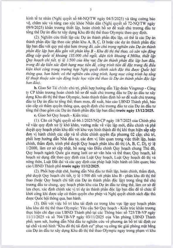 - Trước 11/12/2025: Báo cáo kết quả lập hồ sơ quy hoạch phân khu A-B-C-D.